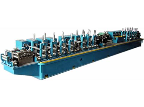 高頻焊管機(jī)是以帶鋼為原料,經(jīng)開卷、成型、高頻焊接、解決焊瘤、定徑、校直、切斷等一系列制管工序制造出圓鋼管或各樣式一行鋼管的成套設(shè)備。采用輥式成型將帶鋼冷彎加工成圓坯,通過(guò)高頻感應(yīng)加熱將焊縫擠壓形成圓管,在經(jīng)過(guò)定徑加工生產(chǎn)出各樣式標(biāo)準(zhǔn)規(guī)格的圓管、方矩形管。
